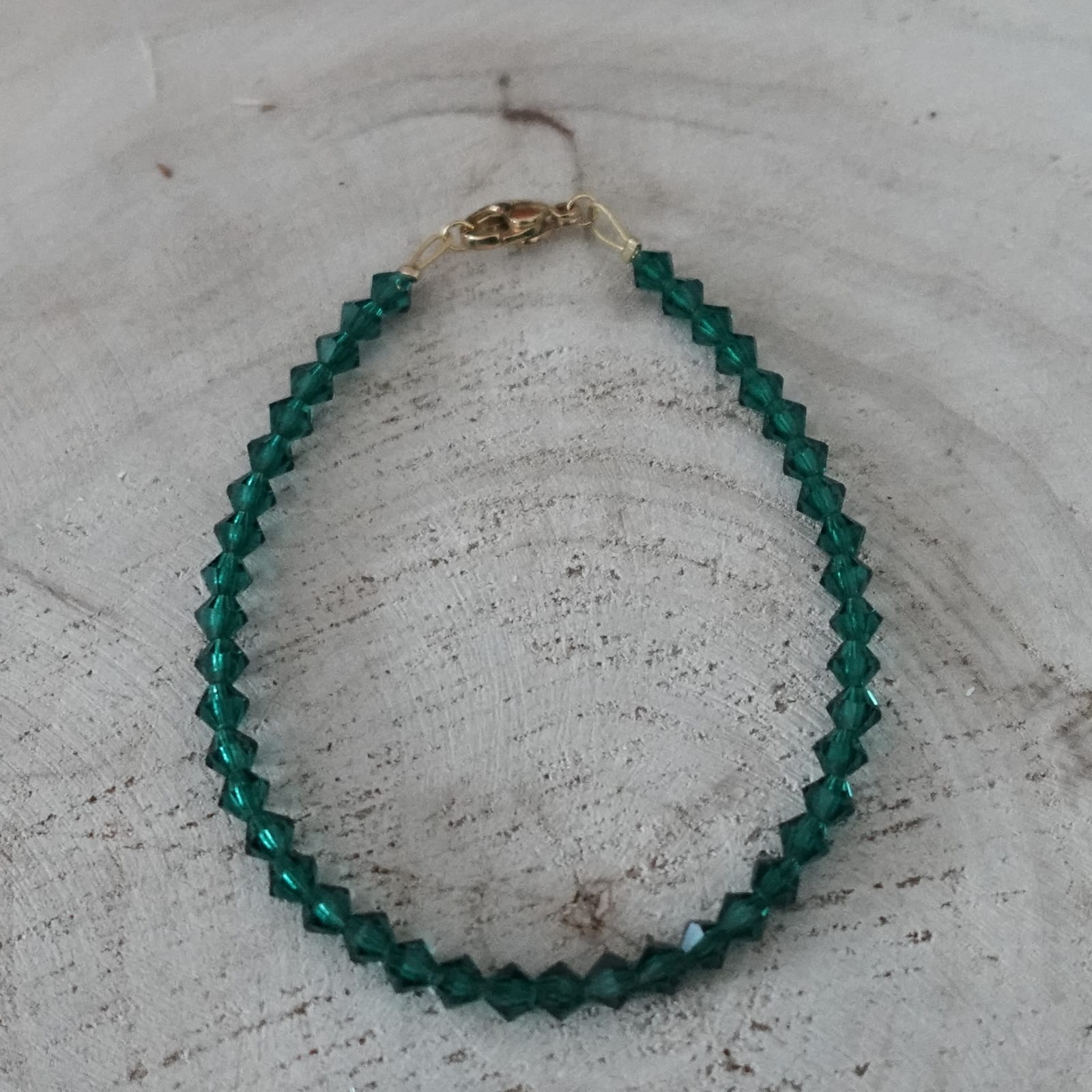 This handmade bracelet features 4 mm Preciosa Bicone crystal beads in divers —colors a rich, transparent green reminiscent of freshly cut gemstones. The faceted bicones catch the light from every angle, creating a subtle shimmer. Finished with a Stainless Steel clasp closure.